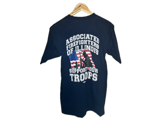 Bayside Heavyweight "Associated Firefighters of Illinois Support Our Troops" Cotton Mens T-Shirt